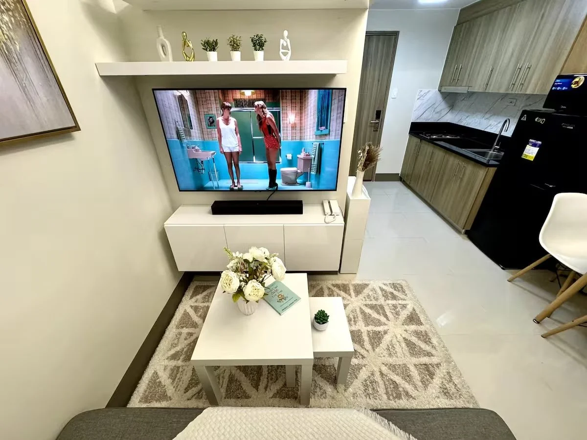 Welcome to our 1-bedroom end unit at SMDC Fame Residences. Ideal for 4 guests, facing amenities. Enjoy a fully equipped kitchen, heater, and washing machine. With receptionist and guard. Ground floor offers dining, shopping, and groceries. Pool amenities available for a fee. Experience comfort and convenience in the heart of the city.